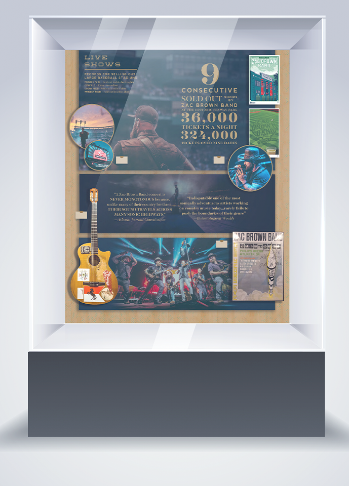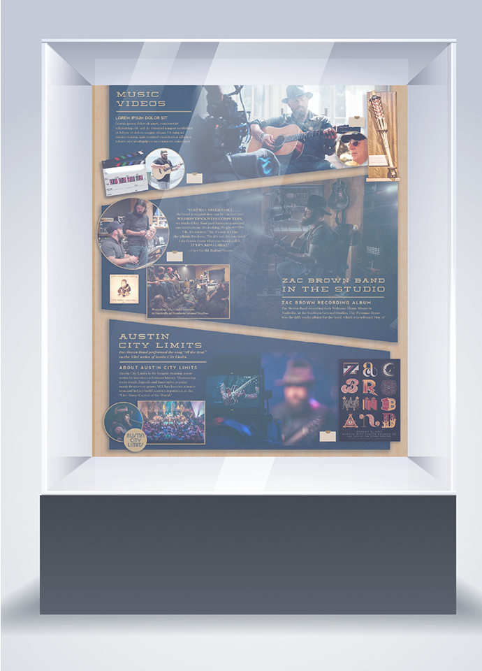 I’ve had the opportunity to work on large-format printing projects, creating bold, high-impact designs across a variety of environments. My work includes the Read n’ Roll bus wrap, where I turned storytelling and branding into a dynamic, full-vehicle visual experience. I’ve also designed large-scale wall graphics and in-store point-of-purchase displays for Z. Alexander Brown Wine, and brought the same attention to detail to all the display cases at the Zac Brown Social Club in Philips Arena.
